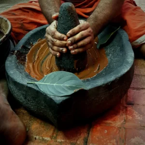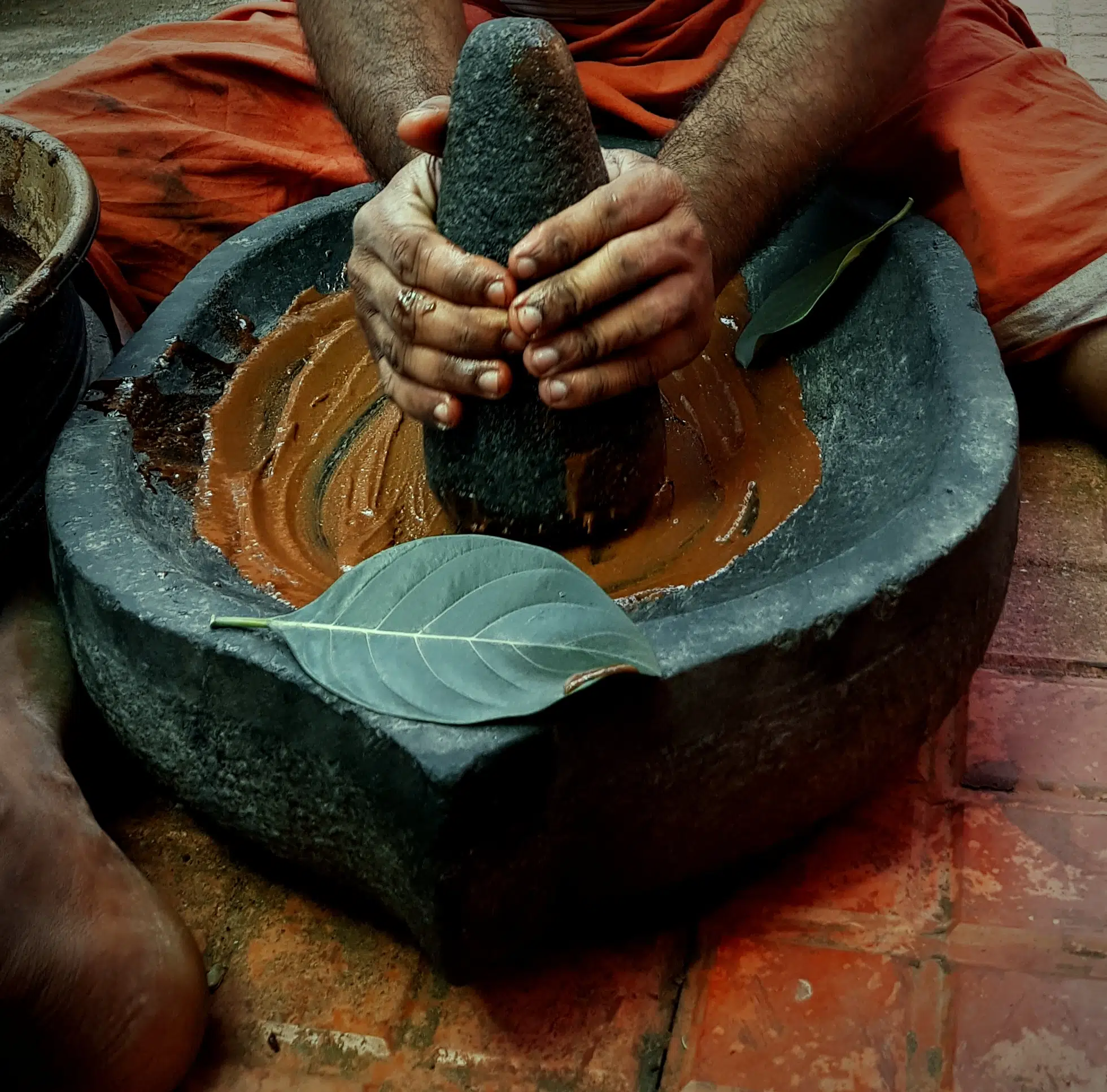 Traditional Medicine Making is a fundamental component of our practice. At Masters Kalari, all medicines and therapeutic oils utilized for massage are crafted and prepared on-site. The recipes and methods of preparation have been transmitted through generations, from Guru to Disciple, ensuring their authenticity. Many of these remedies are exclusive to our treatment approach. We do not depend on commercial mass production; instead, we prioritize the quality of each medicine. Our formulations consist of pure, natural ingredients, meticulously prepared by hand over a wood fire. Strict adherence to traditional methods is maintained without exception. The medicines and oils used in our massages are specifically tailored blends of herbs and remedies designed for each individual patient.