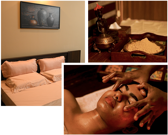 Kizhi – A focused massage utilizing heated medicinal bundles or hot bags, lasting around 50-80 minutes. This treatment is usually performed alongside the full body oil massage to maximize benefits. Cloth-wrapped pouches filled with heated herbs are applied with gentle pressure to targeted areas, promoting concentrated absorption. Benefits include alleviation of joint pain and reduction of muscle cramps.